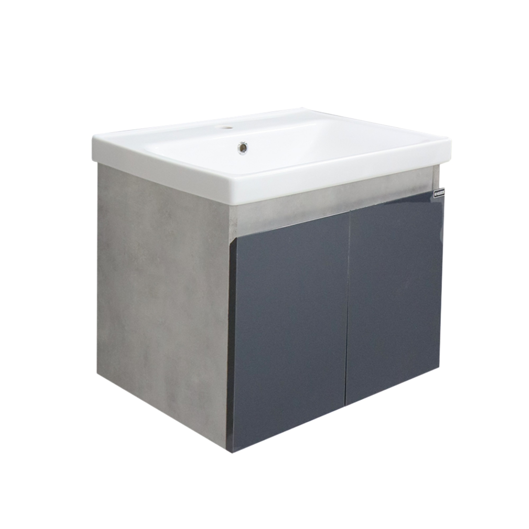 Das Badmöbel Set Alfa in Anthrazit zeigt eine ruhige Front mit präzisen Spaltmaßen und bündigen Kanten. Die Front aus MDF laminiert wirkt klar und modern, der Retro Silber Korpus rahmt dezent, ohne die Linie zu brechen. In 60 cm fügt sich der Waschtisch ausgewogen ein; die hängende Ausführung hält die Optik leicht und sorgt am Waschplatz für einen geordneten, eleganten Eindruck.