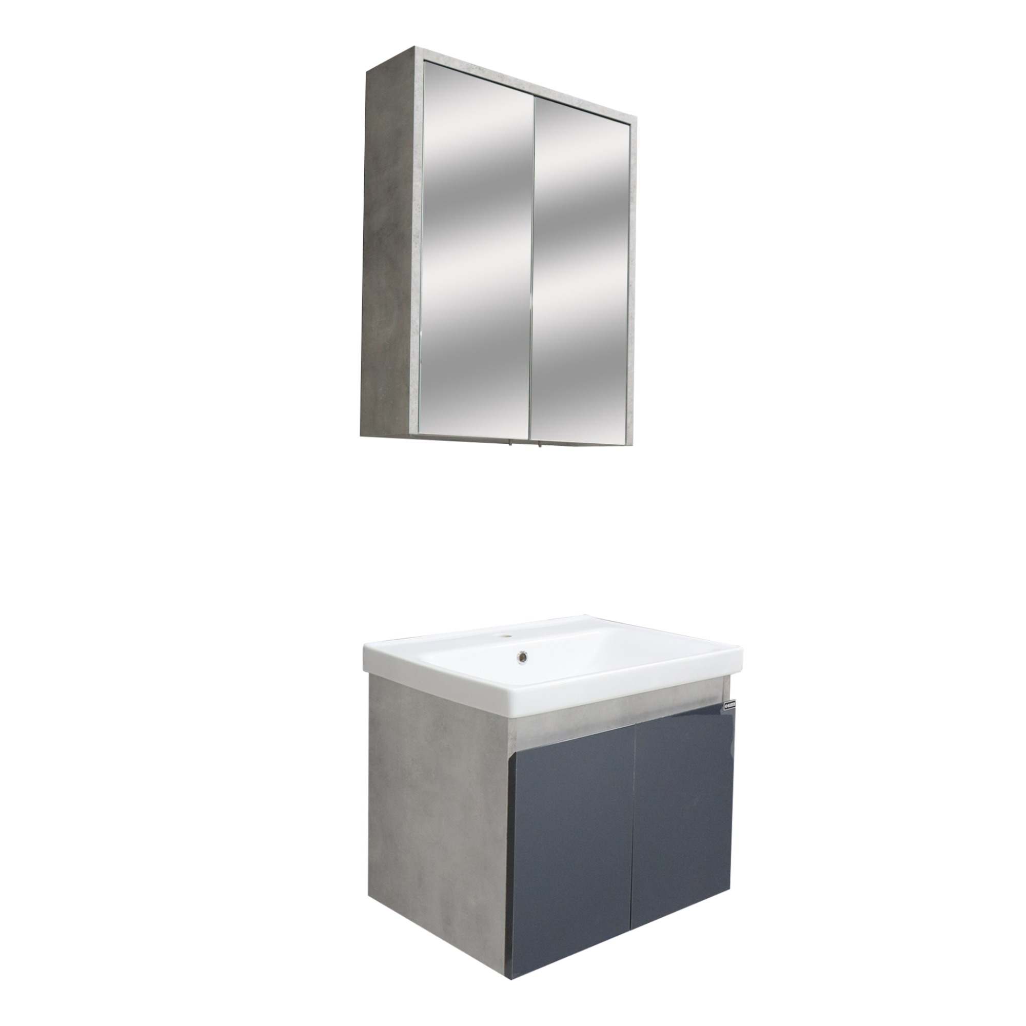Badmöbel 3-er Set Alfa in Anthrazit, 60 cm – Einbau-Waschbecken mit Unterschrank & Spiegelschrank, Retro-Stil