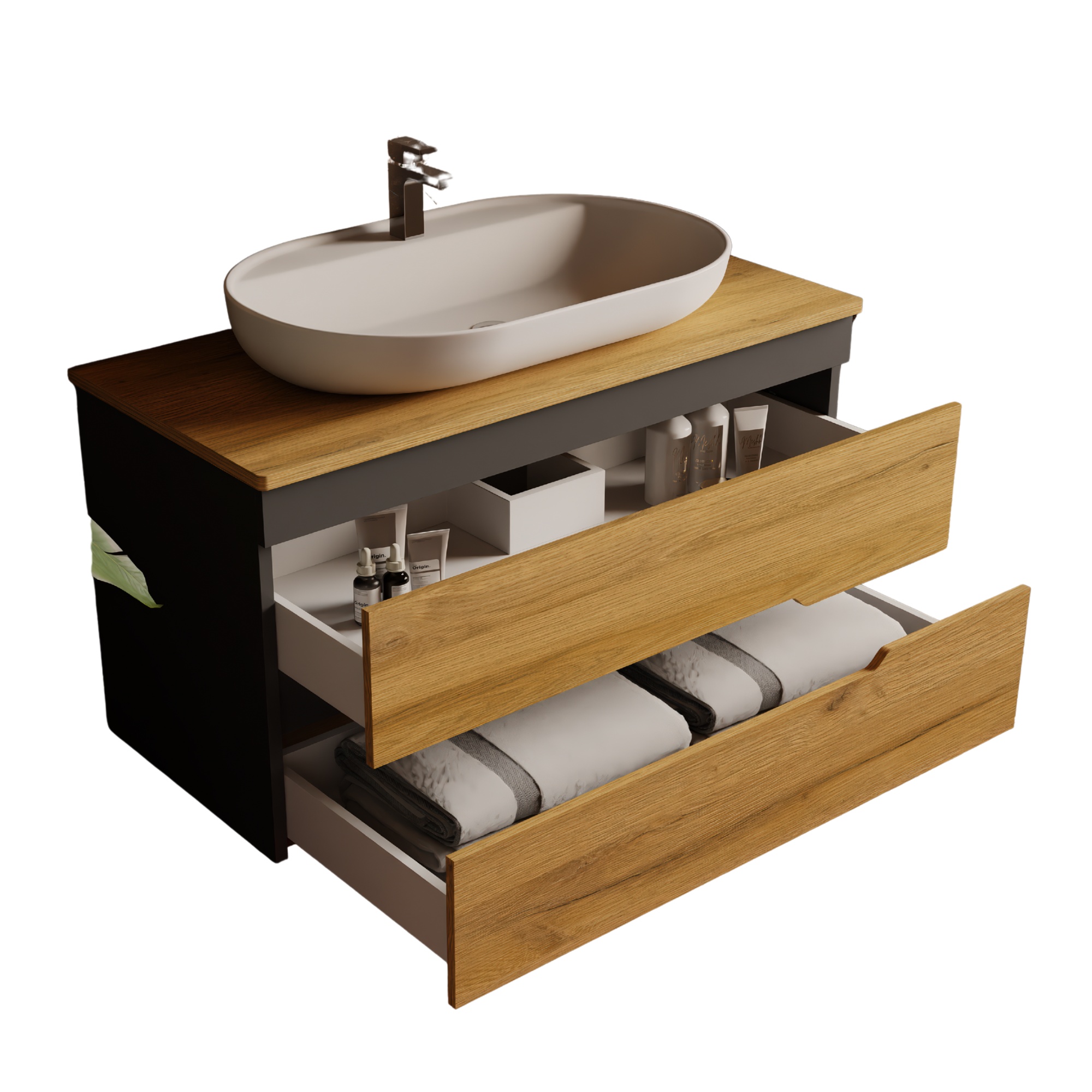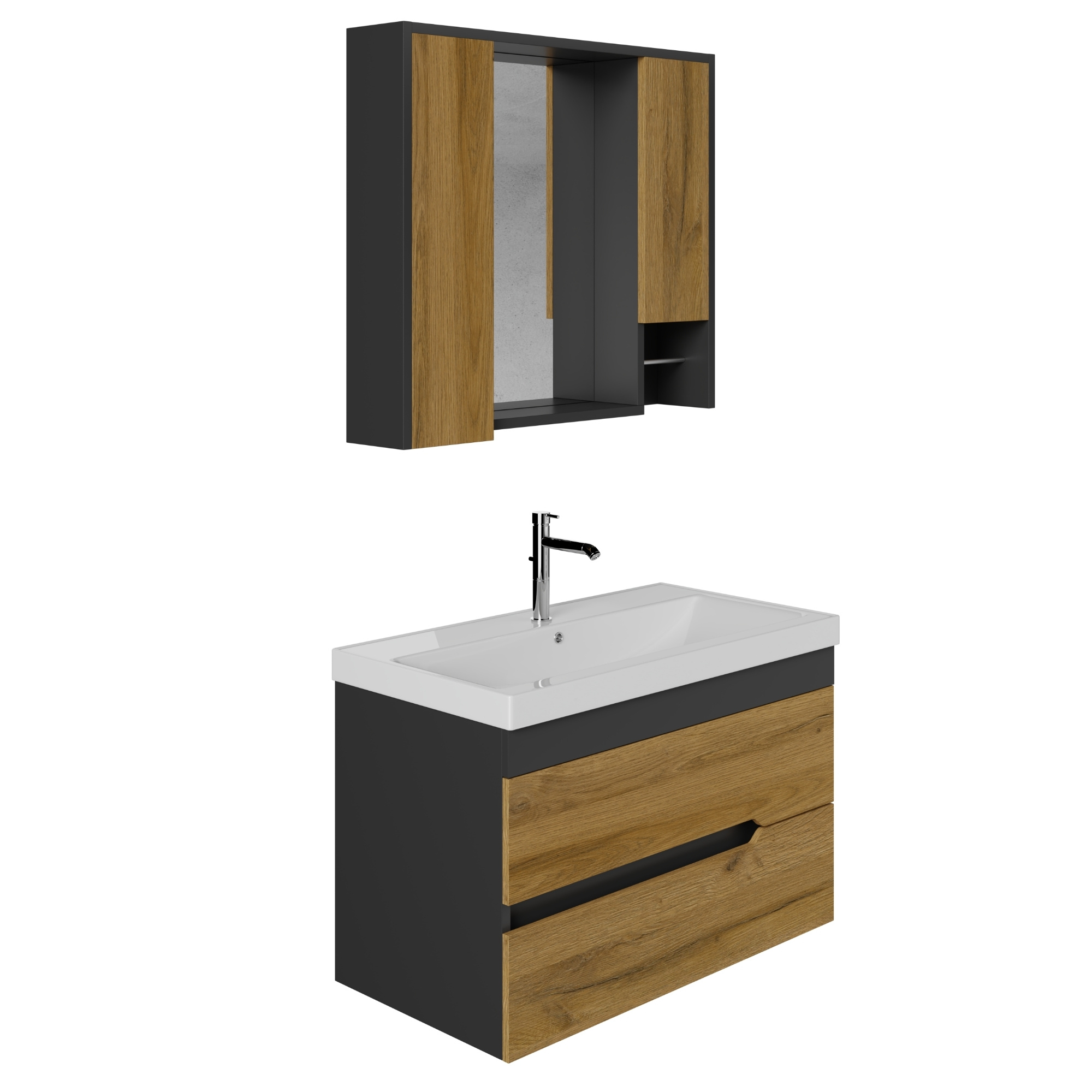 Badmöbel 3-er Set in Anthrazit & Eiche – Waschtisch mit Unterschrank & Spiegelschrank, 60/80/100 cm