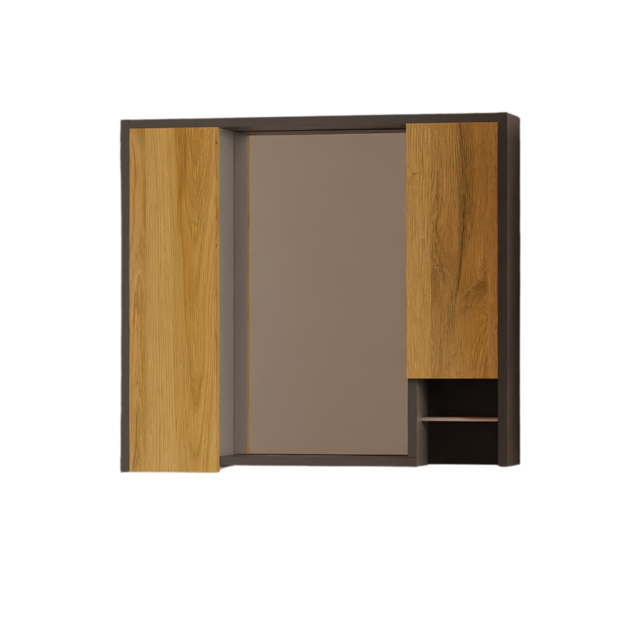 Ein Spiegelschrank mit der Farbgebung Eiche in Zusammenspiel mit Anthrazit setzt ein Highlight am Waschplatz. Das besondere des Badezimmerspiegelschranks dieses Modells ist, dass dieser mit integrierter Handtuchstange, mit Ablageregal am Spiegel und mit seitlichem Schrank kommt. Dadurch entsteht ein unverwechselbares Bild und es wird ausreichend Stauraum geschaffen.