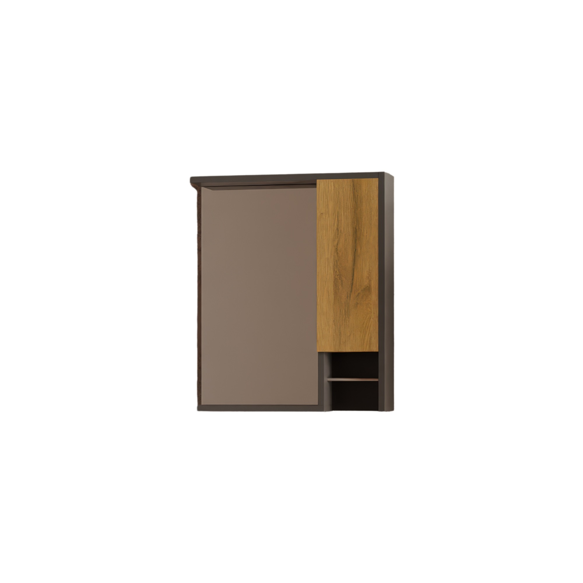 Der Spiegelschrank Marmara kombiniert moderne Spiegelfronten mit warmen Eiche-Akzenten. Hinter den Türen bieten Ablagen übersichtlichen Stauraum für Pflegeprodukte. Soft-Close-Scharniere sorgen für leises Schließen, das seitliche offene Fach für schnell erreichbare Utensilien.
