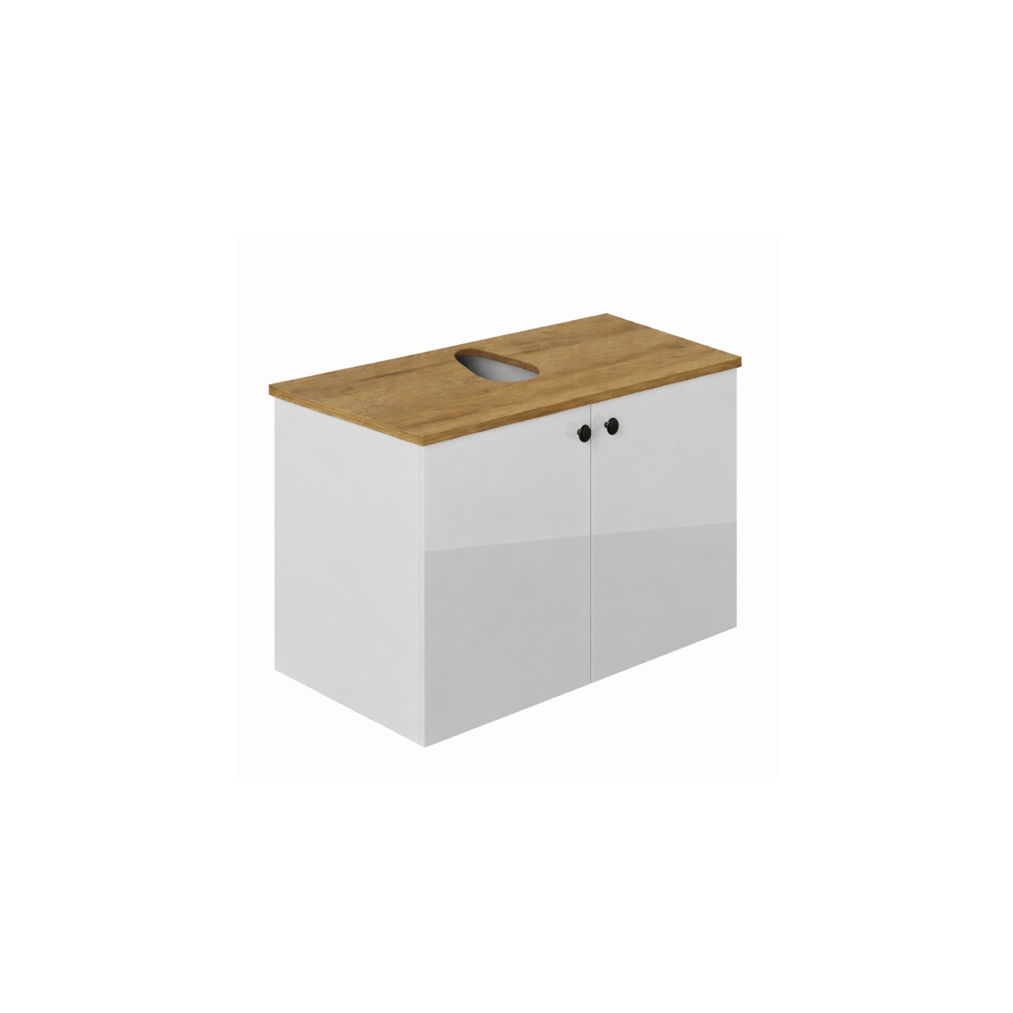 Unterschrank Mimoza 80 cm ist wahlweise pur oder mit passender Konsole erhältlich. Die Konsole ergänzt den weißen Unterschrank um eine natürliche Holzoptik und setzt einen warmen Akzent im Bad. Für die Ausführung mit Konsole stehen Eiche und Walnuss zur Auswahl, sodass sich der Look gezielt auf verschiedene Einrichtungsstile abstimmen lässt.