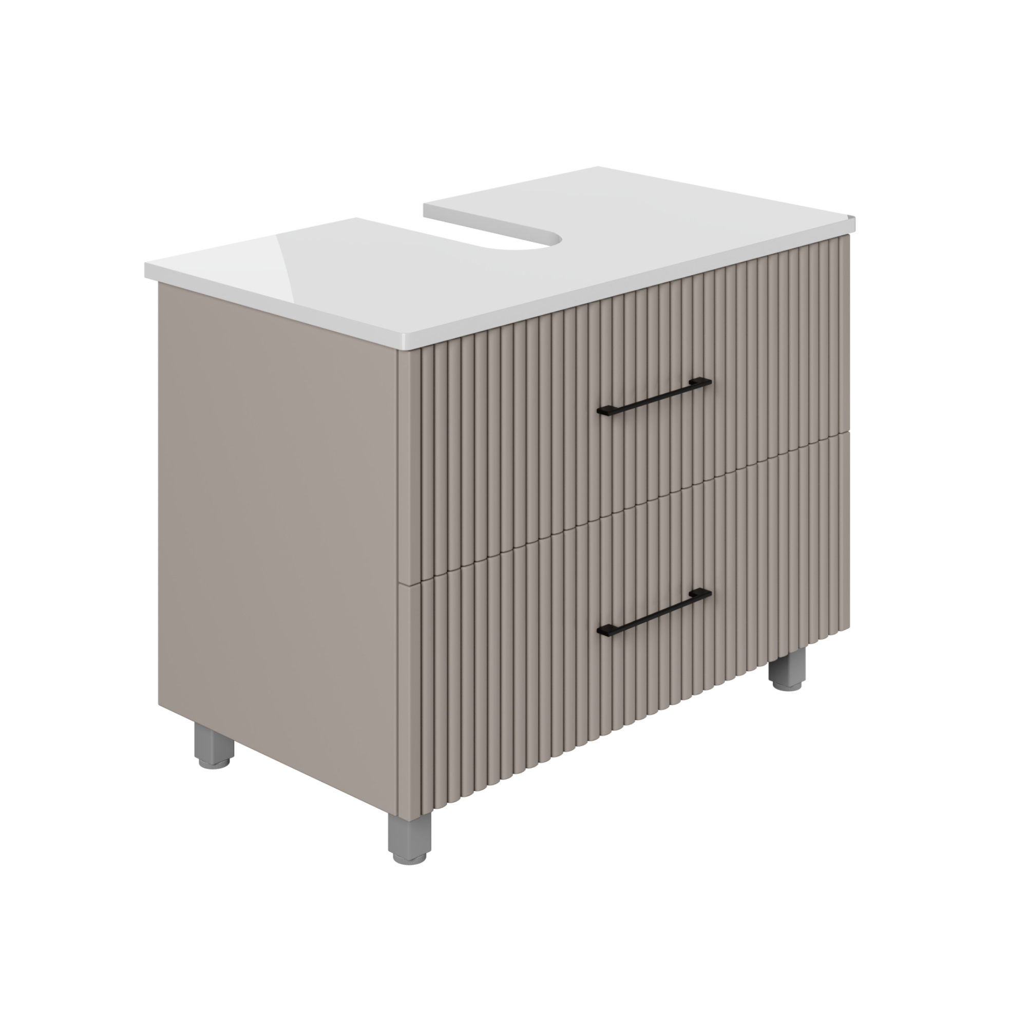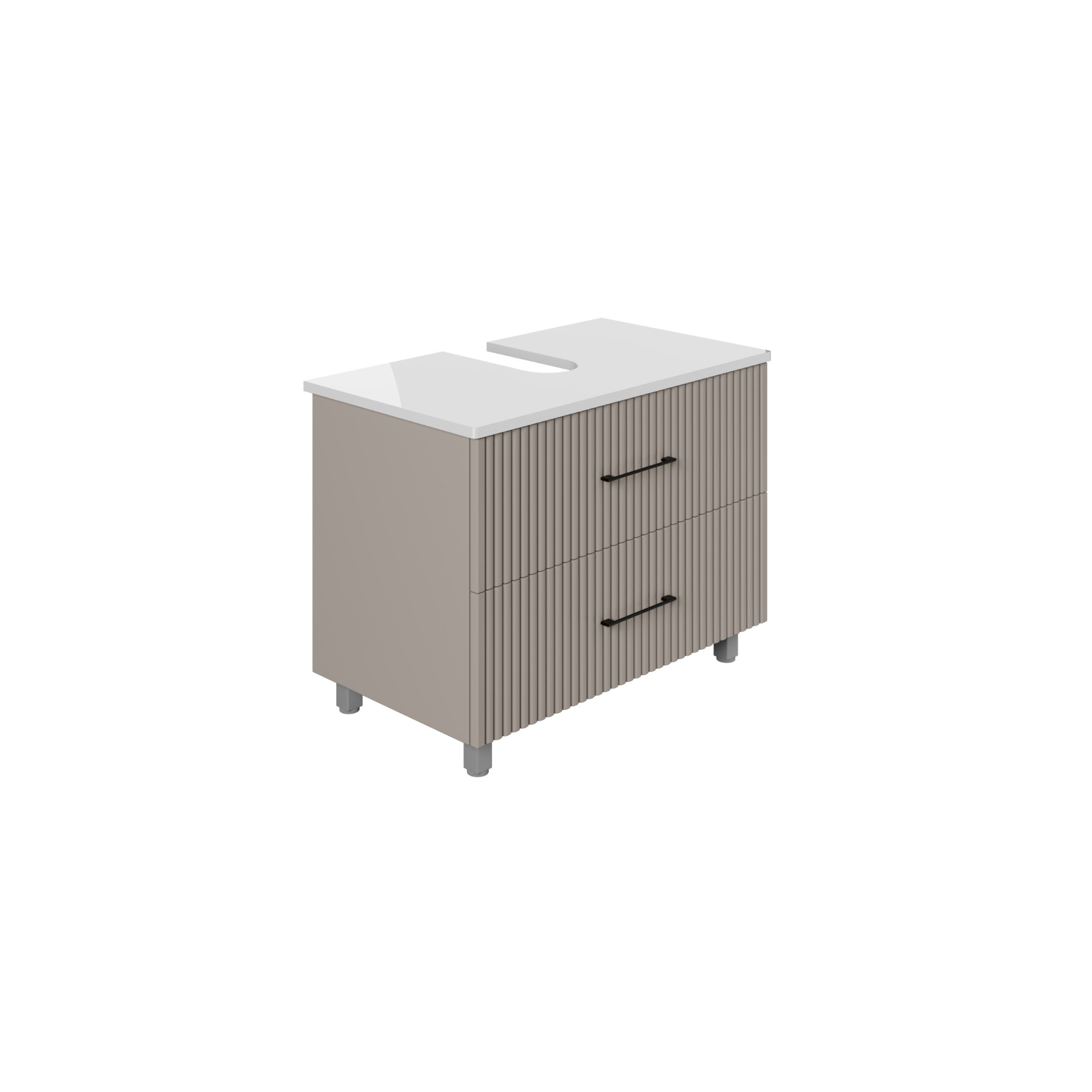 Der Waschbeckenunterschrank Liana steht für flexible Badgestaltung und passt problemlos unter verschiedene Waschbeckenformen und -größen. Durch seine außergewöhnliche Riffelstruktur und der pastellgrauen Farbgebung fügt sich der Badschrank harmonisch in moderne aber auch eklektische Badezimmer ein. Die freistehende Konstruktion des Badezimmerunterschranks ermöglicht eine unkomplizierte Platzierung, sodass zusätzlicher Stauraum geschaffen wird, ohne aufwendige Montagearbeiten. Die außergewöhnlich gestalteten Fronten in pastellgrau unterstreichen den zeitgemäßen Charakter dieses Möbelstücks.
