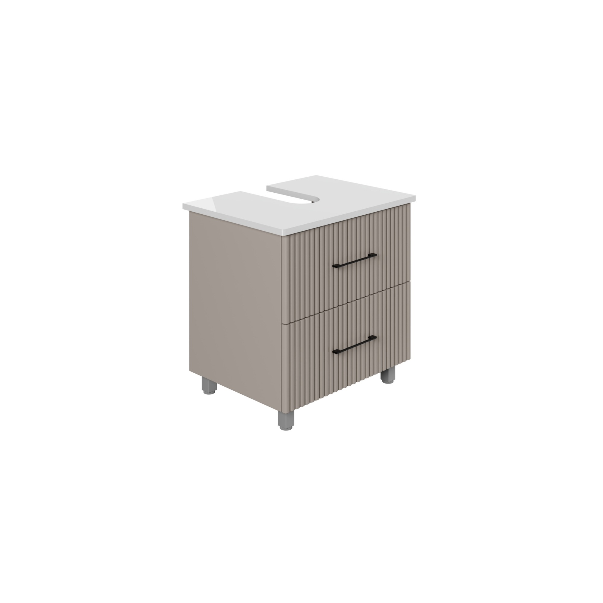 Der Waschbeckenunterschrank Liana steht für flexible Badgestaltung und passt problemlos unter verschiedene Waschbeckenformen und -größen. Durch seine außergewöhnliche Riffelstruktur und der pastellgrauen Farbgebung fügt sich der Badschrank harmonisch in moderne aber auch eklektische Badezimmer ein. Die freistehende Konstruktion des Badezimmerunterschranks ermöglicht eine unkomplizierte Platzierung, sodass zusätzlicher Stauraum geschaffen wird, ohne aufwendige Montagearbeiten. Die außergewöhnlich gestalteten Fronten in pastellgrau unterstreichen den zeitgemäßen Charakter dieses Möbelstücks.