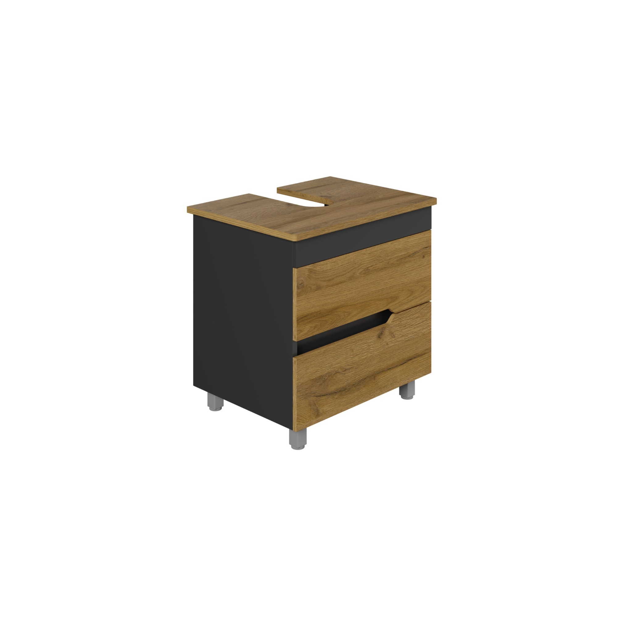 Waschtischunterschrank stehend in Eiche & Anthrazit – Badezimmerunterschrank mit Füßen, 60/80 cm