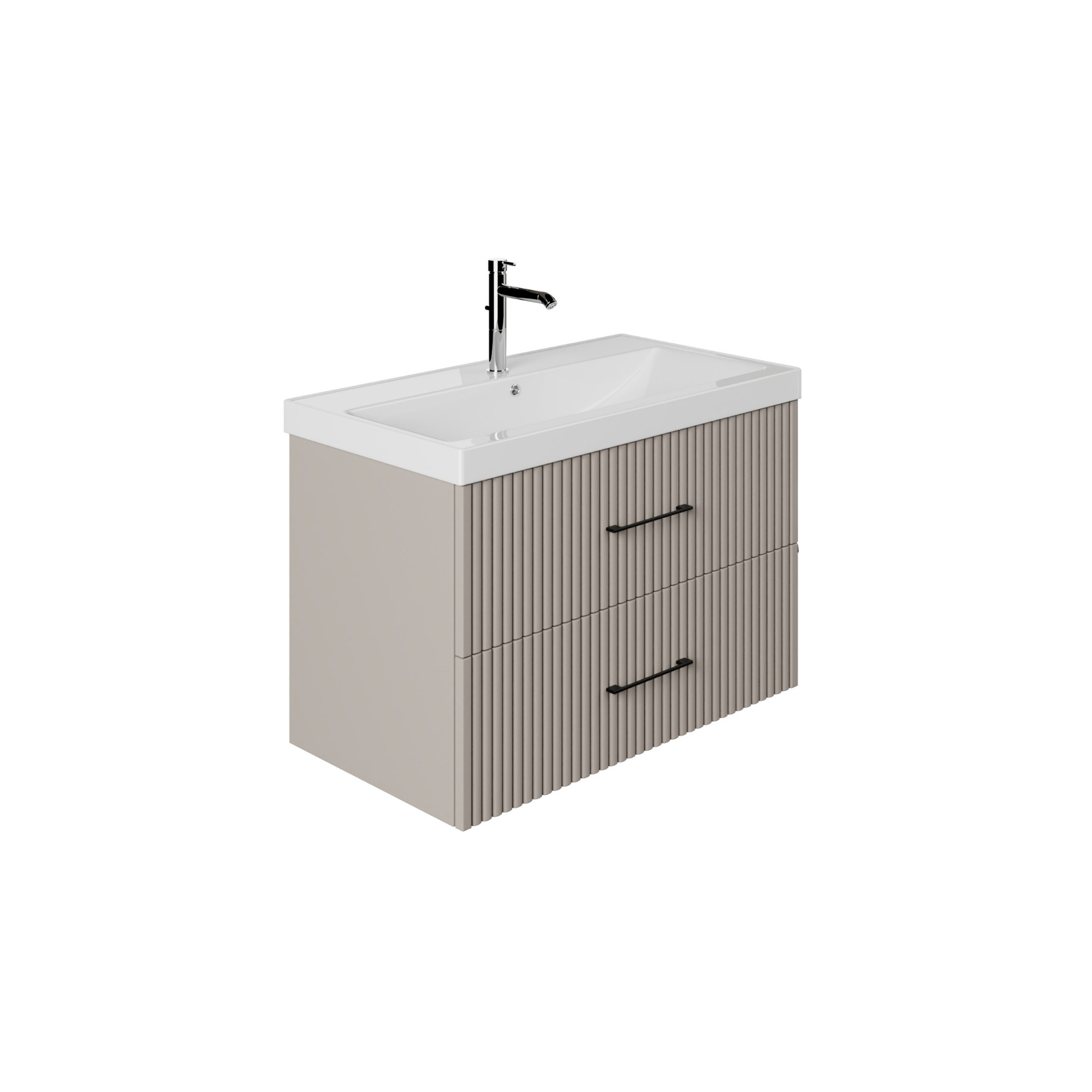 Waschbecken mit Unterschrank hängend, 80 cm, Pastellfarbene Riffeloptik, Keramik-Waschbecken, Waschbecken Set Liana