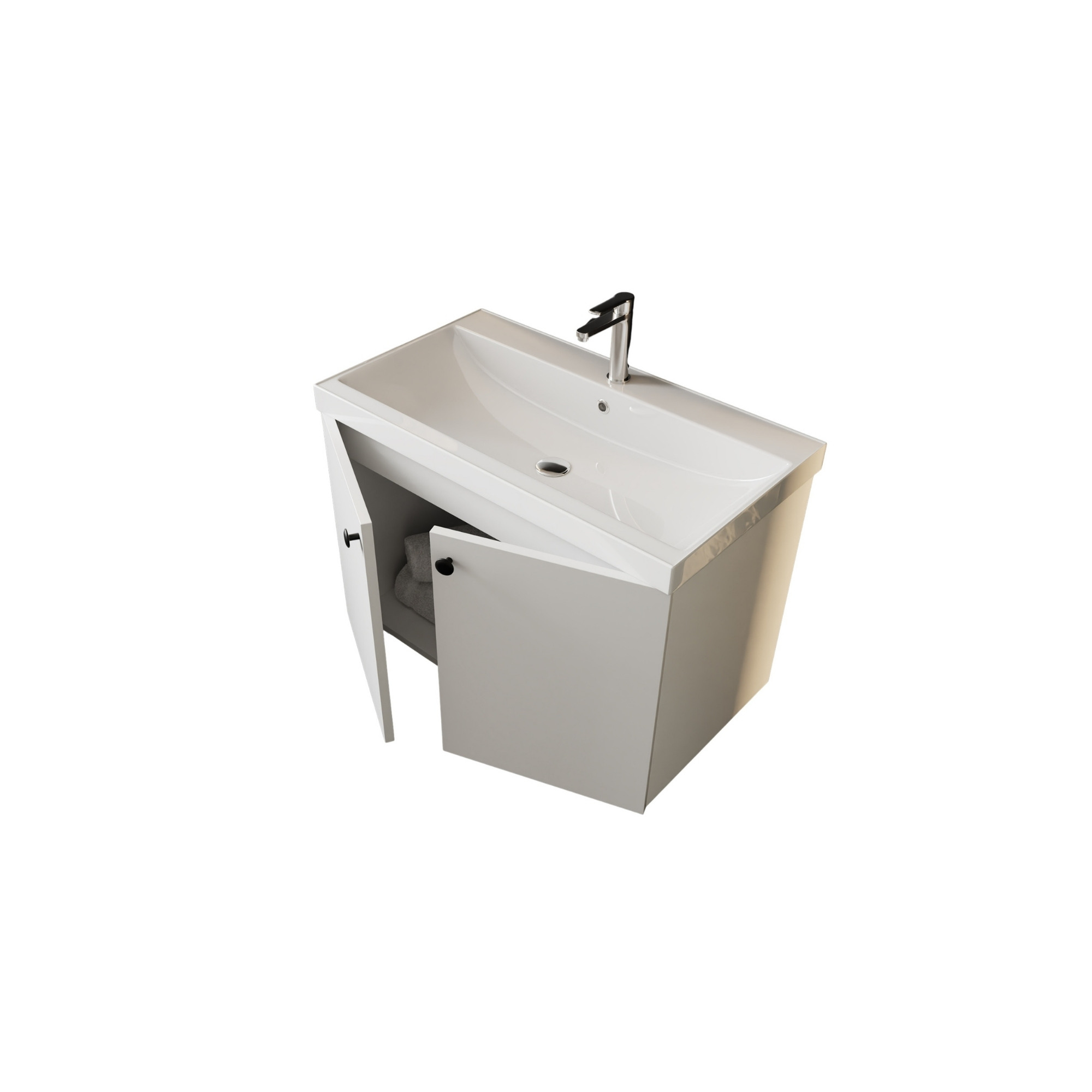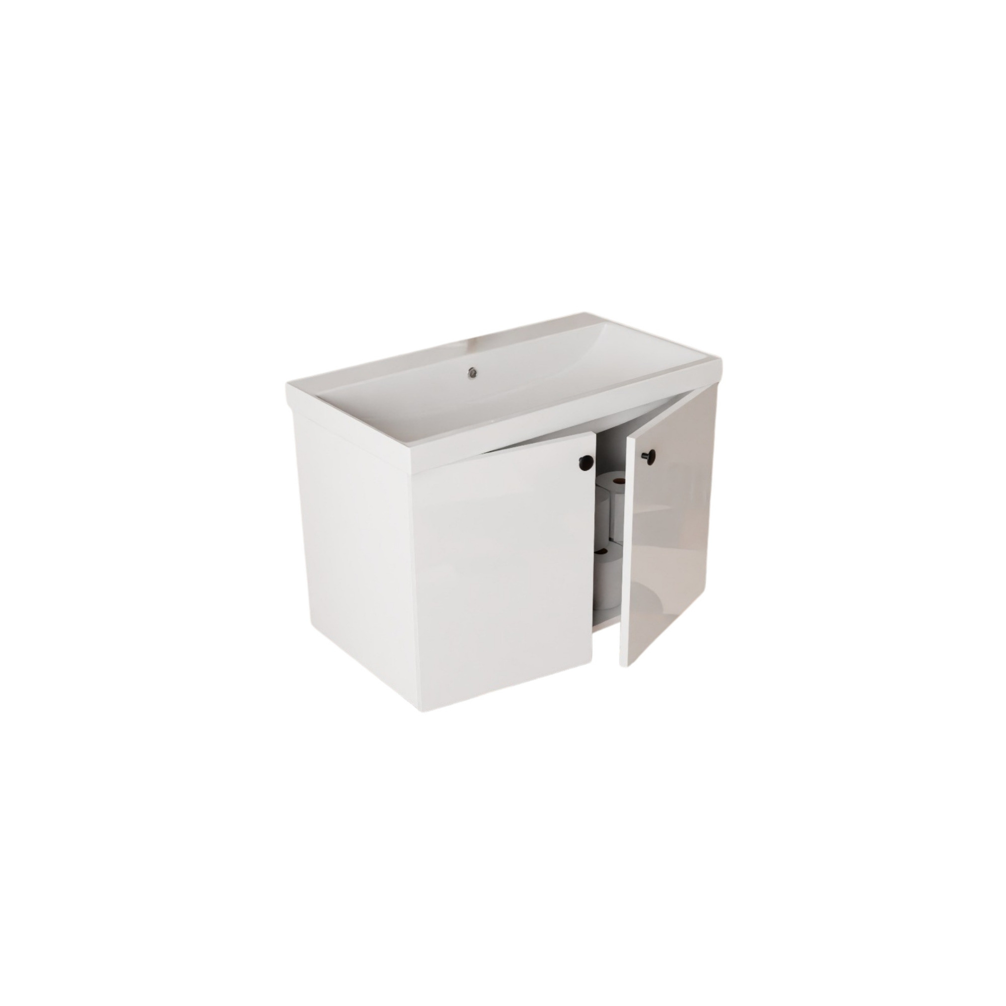 Waschbecken mit Unterschrank hängend in Weiß Hochglanz, Keramik-Waschbecken, Waschbecken Set Mimoza