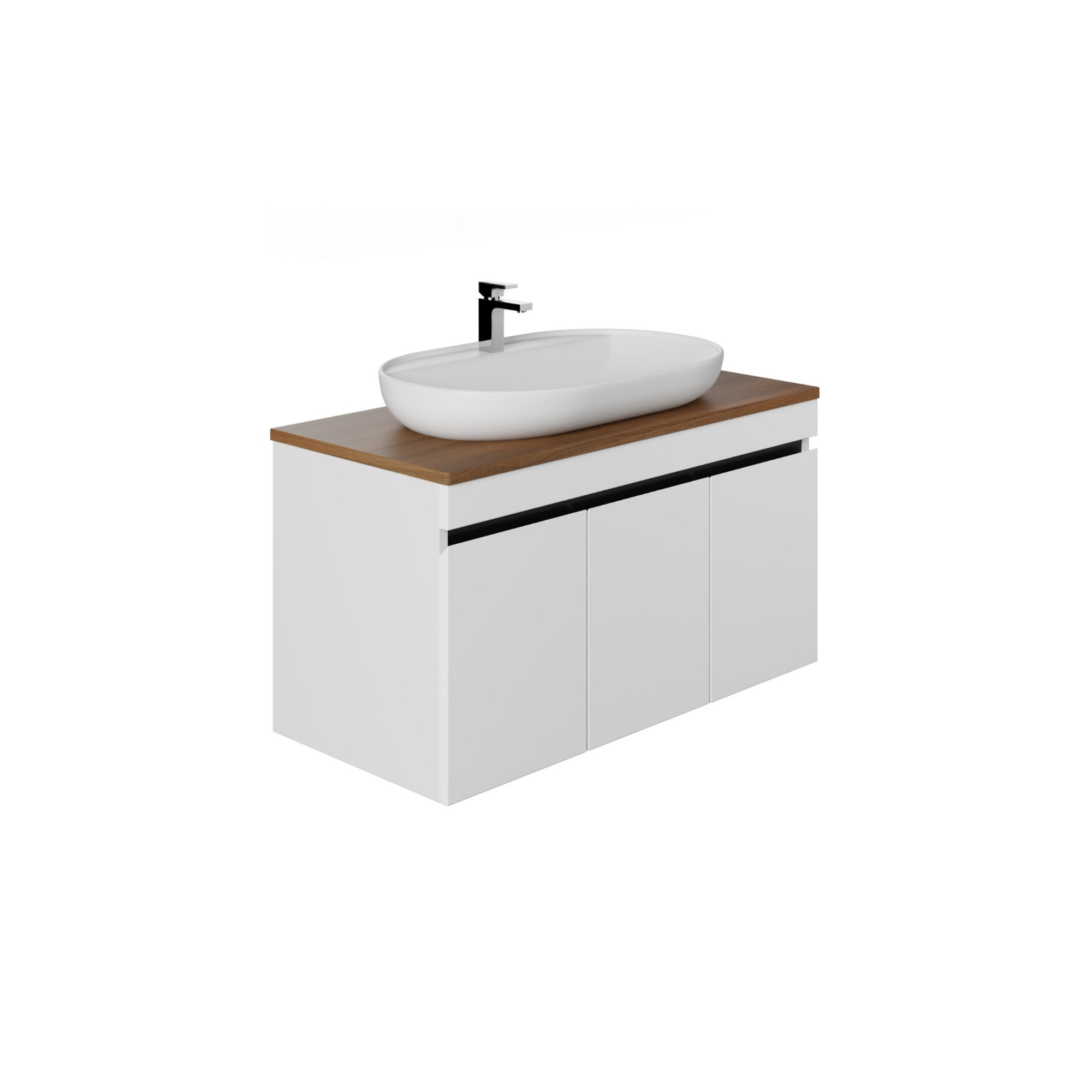 Waschtisch mit Unterschrank hängend – 100 cm, Walnuss-Optik, Weiß, Hochglanz & Aufsatz-Keramikbecken, Waschtisch-Set Venus