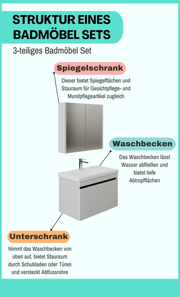 Das beliebteste Format. Ein Badmöbel Set 3-teilig umfasst in der Regel: